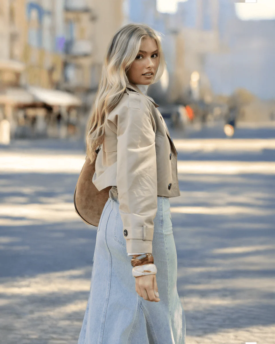 This light wash denim maxi skirt is a wardrobe essential with a modern edge. Designed with a flattering high-rise fit, contrast seam detailing, and a soft flare at the hem, it blends everyday comfort with elevated style. The raw hemline adds a touch of effortless cool, making it perfect for both casual looks and dressed-up outfits. Pair it with boots, sneakers, or heels—it’s as versatile as it is chic.
