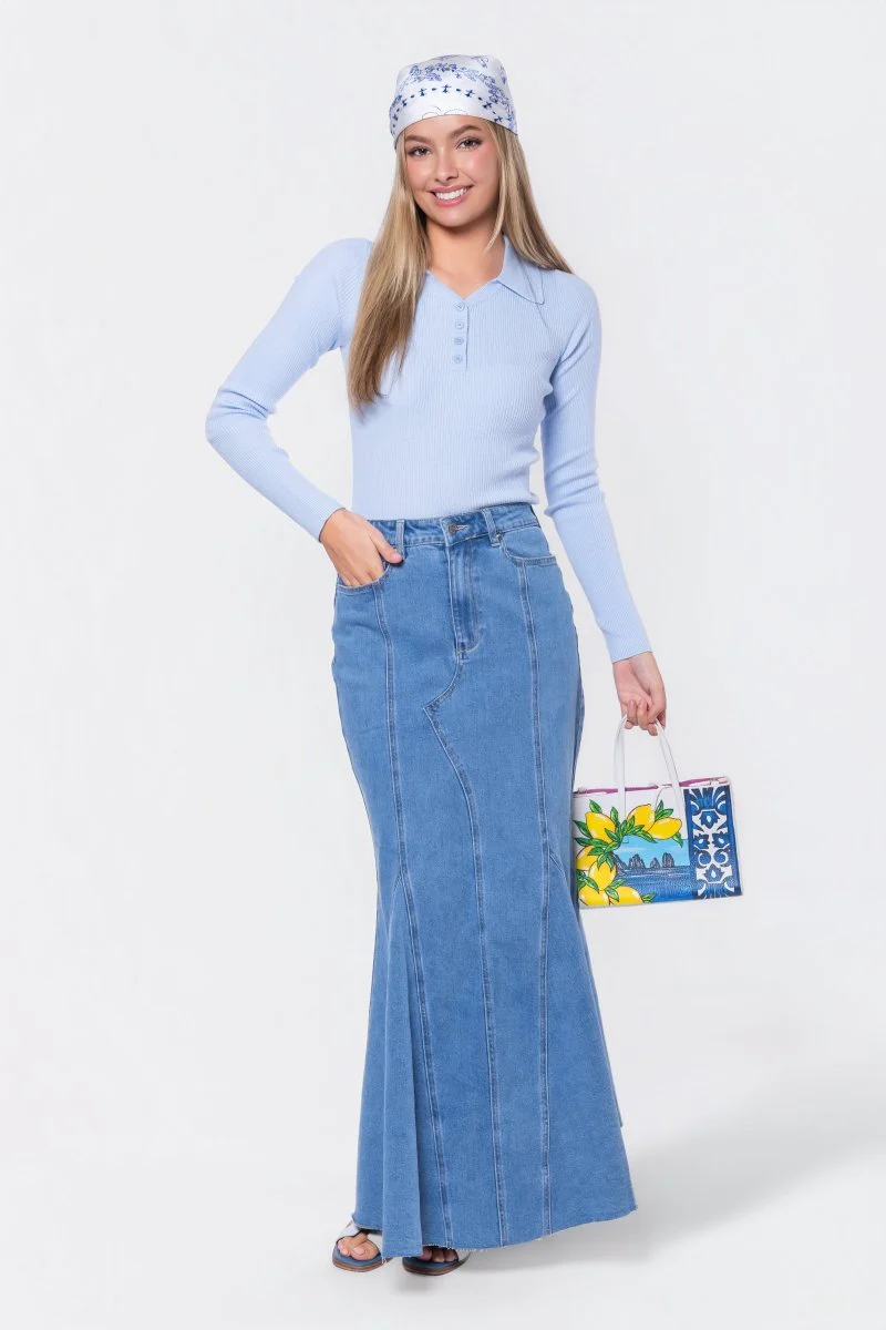Introducing the Bailey! Now available in this light blue color perfect for the season. We’ve added a bit of flair to your basic knit and made it a tasteful feminine top. Perfect for anyone in their soft girl era. Personalize your look with accessories and your favorite Yakira Bella skirt.