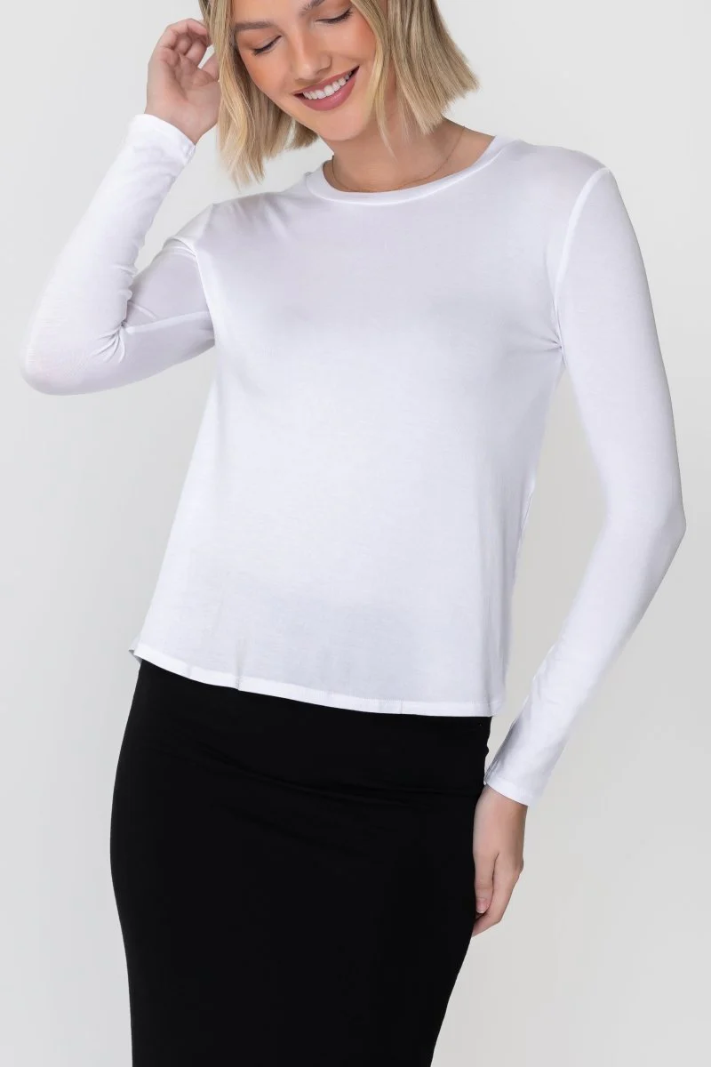 The Phoebe is our butter soft long sleeve tee. Now available in a solid white. This top is so comfortable you'll want to wear it all day long! Whether you need to run errands, go to school or work, or lounge at home... the Phoebe has you covered.