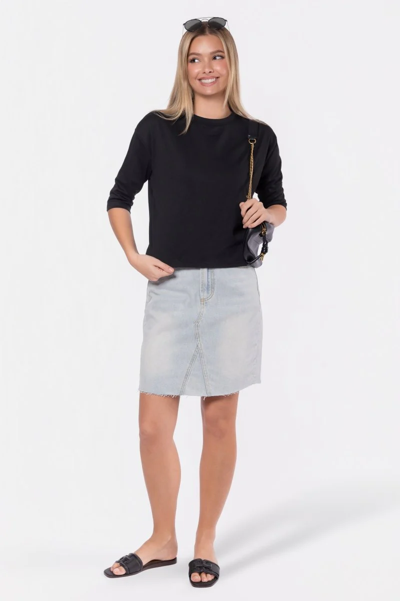 The Remi tee comes in different fabrics and colors. Now available in black. Perfect for daily errand runs, lounging at home, or your an easy matching piece. The sweatshirt material is the perfect weight for a multi seasonal piece. Check out the boxy yet flattering fit and the stylish drop shoulder.
