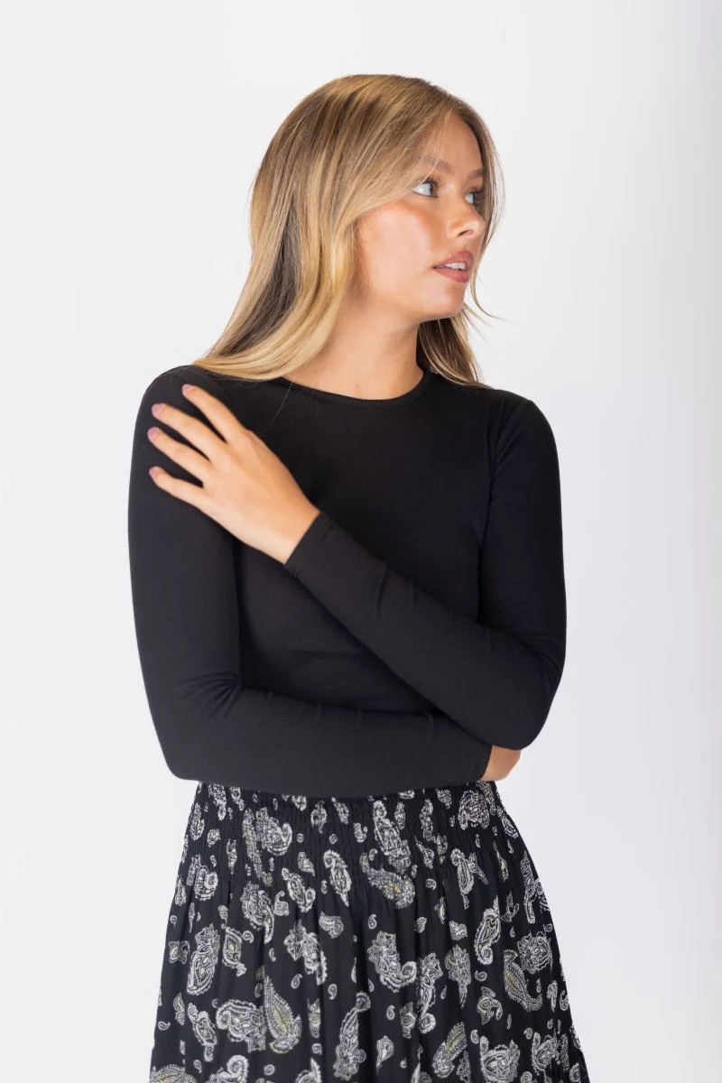 Upgrade your basics with the Renee! This long-sleeve ribbed tee is crafted with a flattering stretch. The effect of this top will make you feel comfortable while put together. This slimming, timeless, top-quality classic will pair with anything in your closet.